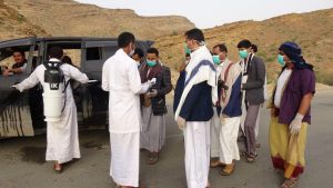 المنفذ الرئيسي لمحافظة صعدة في عزلة العقله منطقة ال عمار بمديرية الصفراء وذلك لتفقد الطاقم الصحي واحتياجاتهم ومستوى اداء عمل الفرق الصحية .