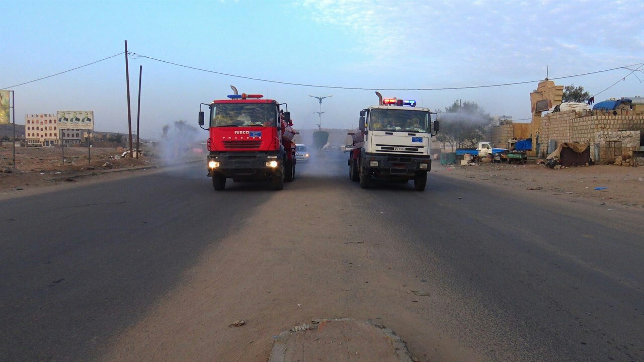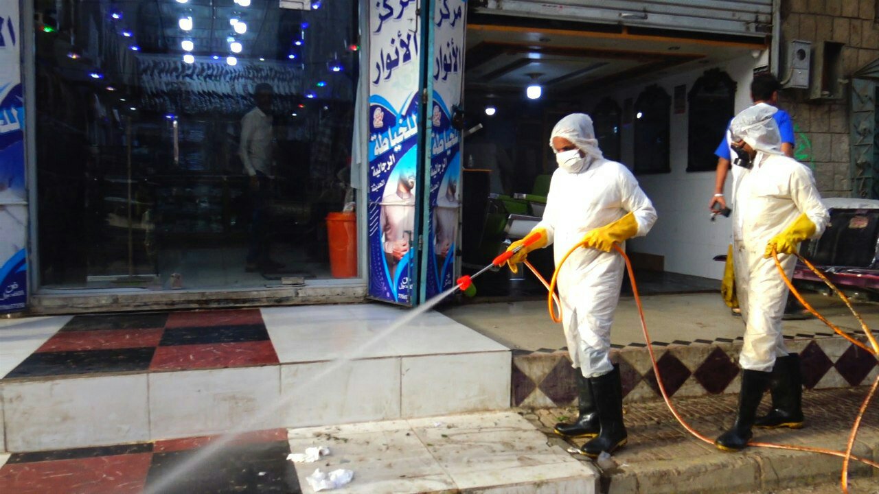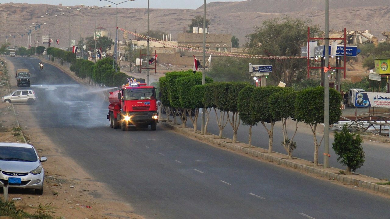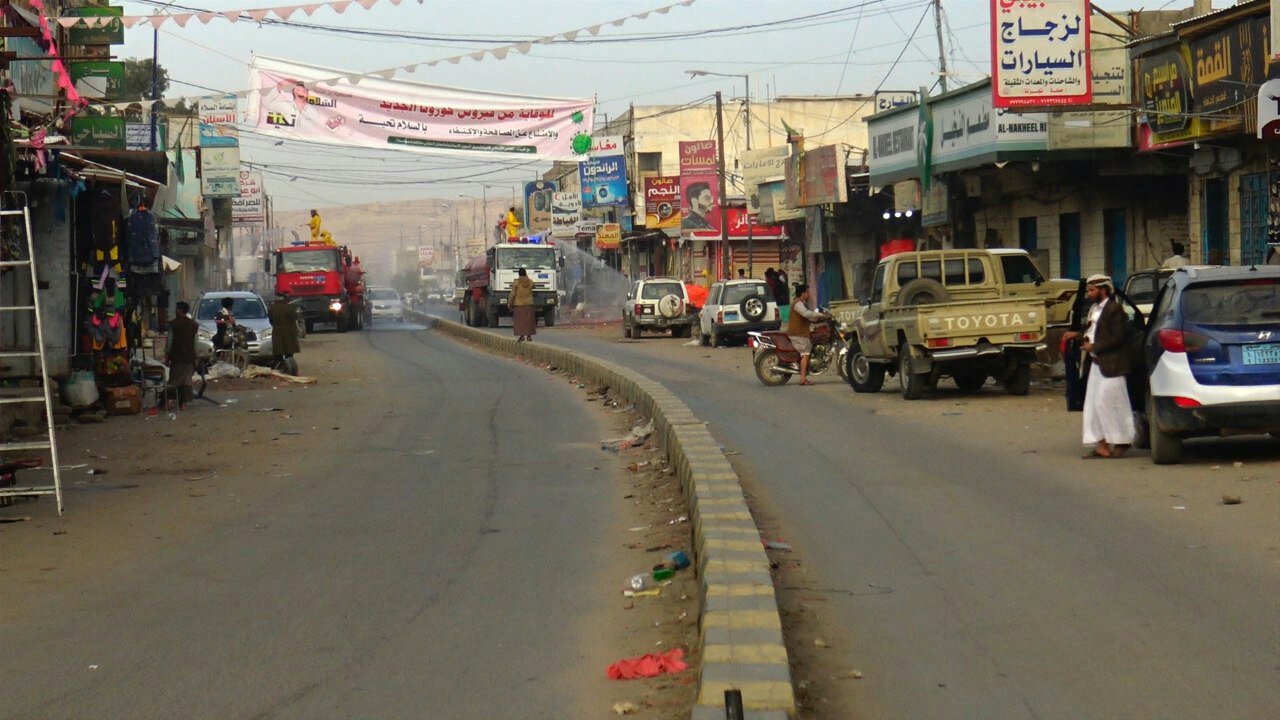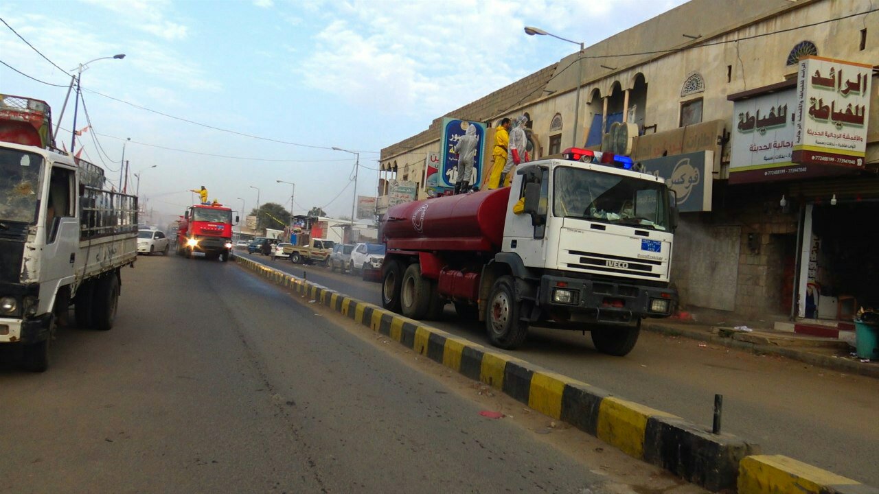 صعدة : تنفيذ حملة رش وتعقيم الشوارع الرئيسة والمحال التجارية بصعدة