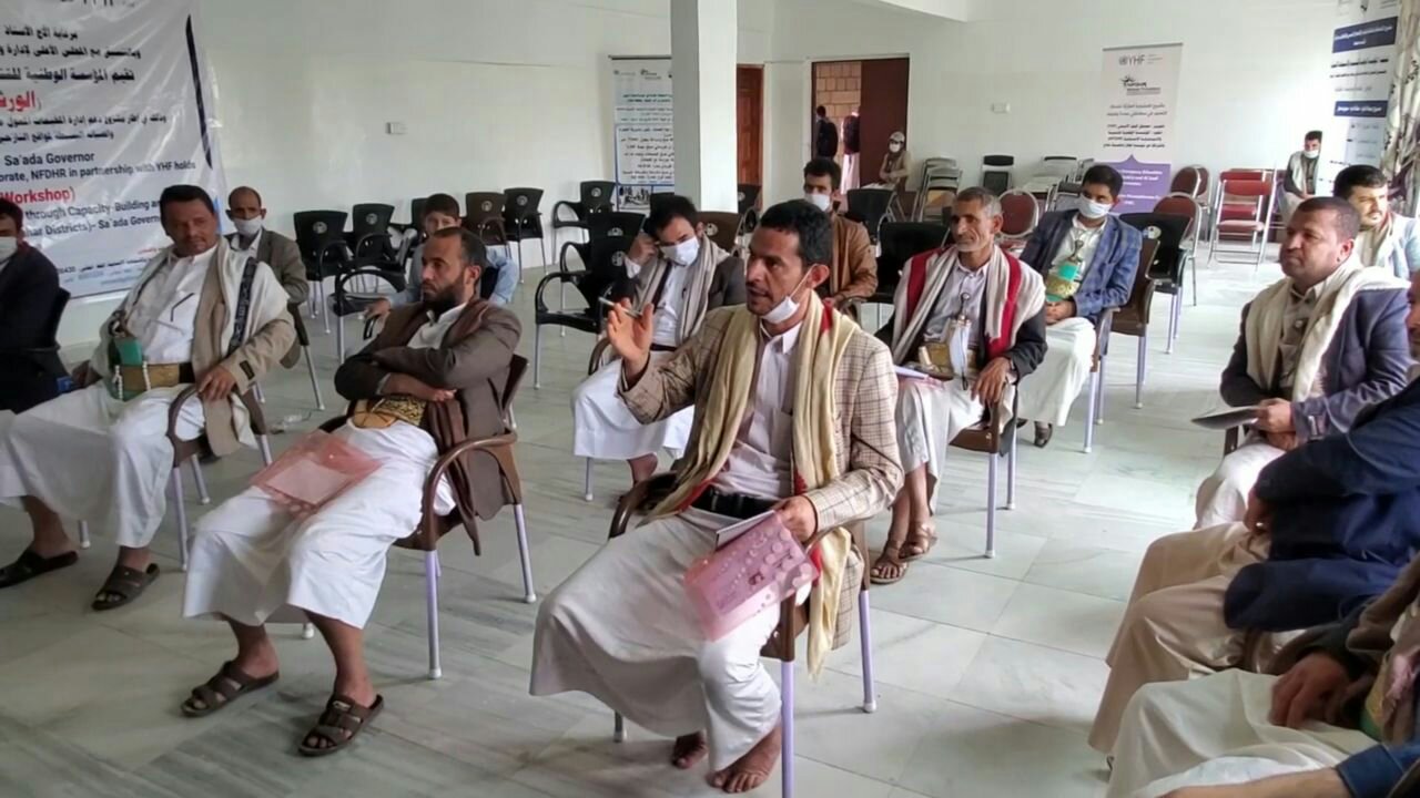 عٌقدت بمحافظة صعدة الورشة التنسيقية للتعريف بأنشطة مشروع دعم إدارة المخيمات بمديريتي سحار والصفراء نظمتها المؤسسة الوطنية للتنمية والاستجابة الانسانية الممول من صندوق اليمن الإنساني ” YHF”.