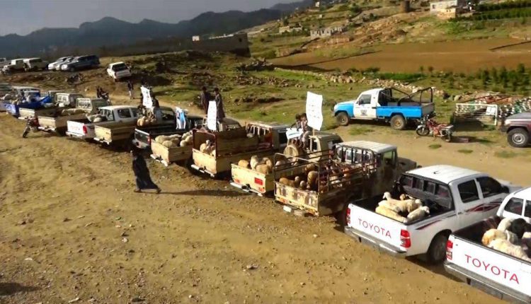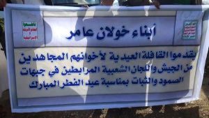 سير أبناء وقبائل مديريات خولان بن عامر بمحافظة صعدة قافلة عيدية للمرابطين من الجيش واللجان الشعبية في جبهات الحدود بمناسبة قدوم عيد الفطر المبارك.
