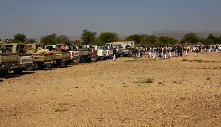 صعدة : قبائل سحار بصعدة تسير قافلة عيدية للمرابطين في الجبهات