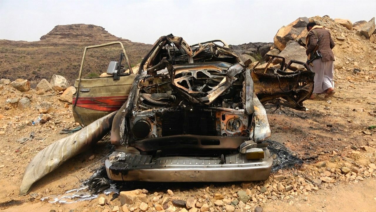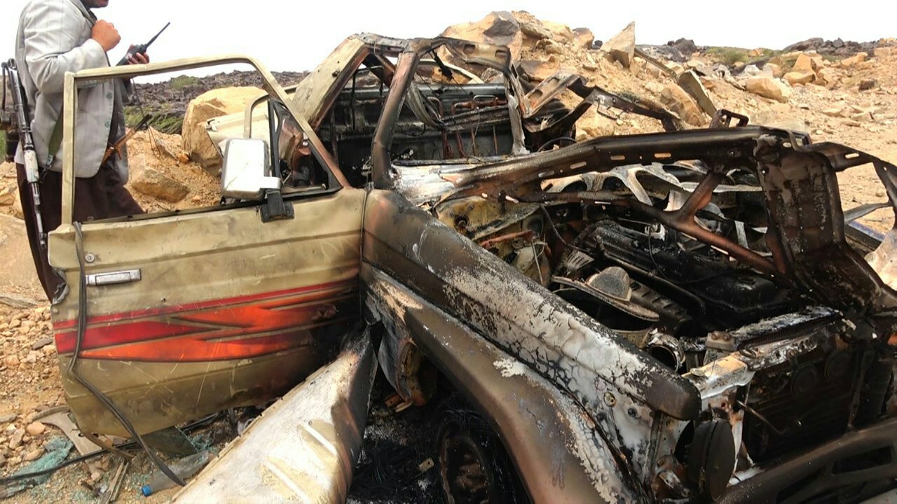 صور من الجريمة التي ارتكبها طيران العدوان في منطقة العقيق بمديرية كتاف باستهداف سيارة أحد المواطنين في الطريق المؤدية إلى المنطقة ، وراح ضحيتها ثلاثة شهداء .