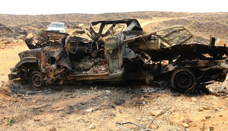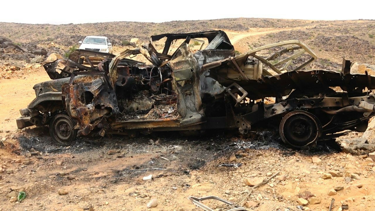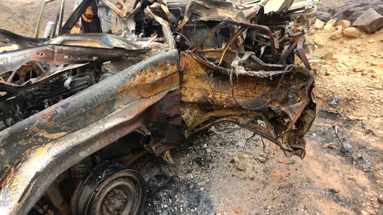صور من الجريمة التي ارتكبها طيران العدوان في منطقة العقيق بمديرية كتاف بصعدة باستهداف سيارة أحد المواطنين في الطريق المؤدية إلى المنطقة ، وراح ضحيتها ثلاثة شهداء .