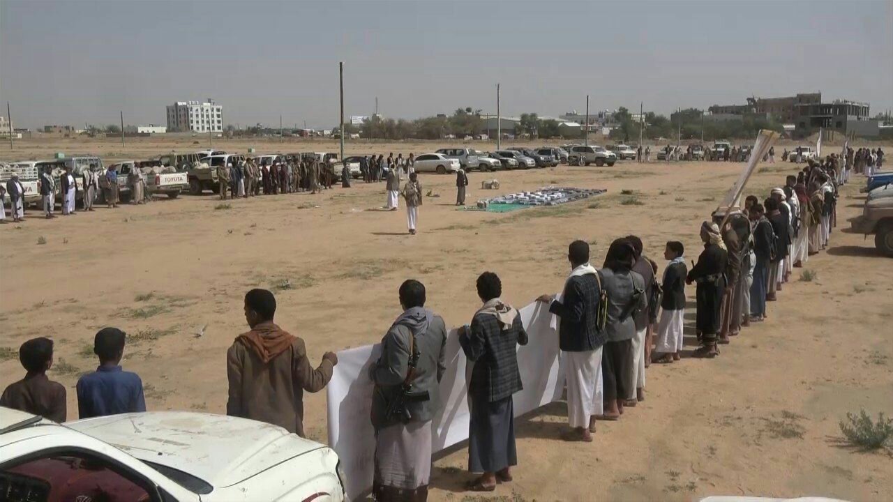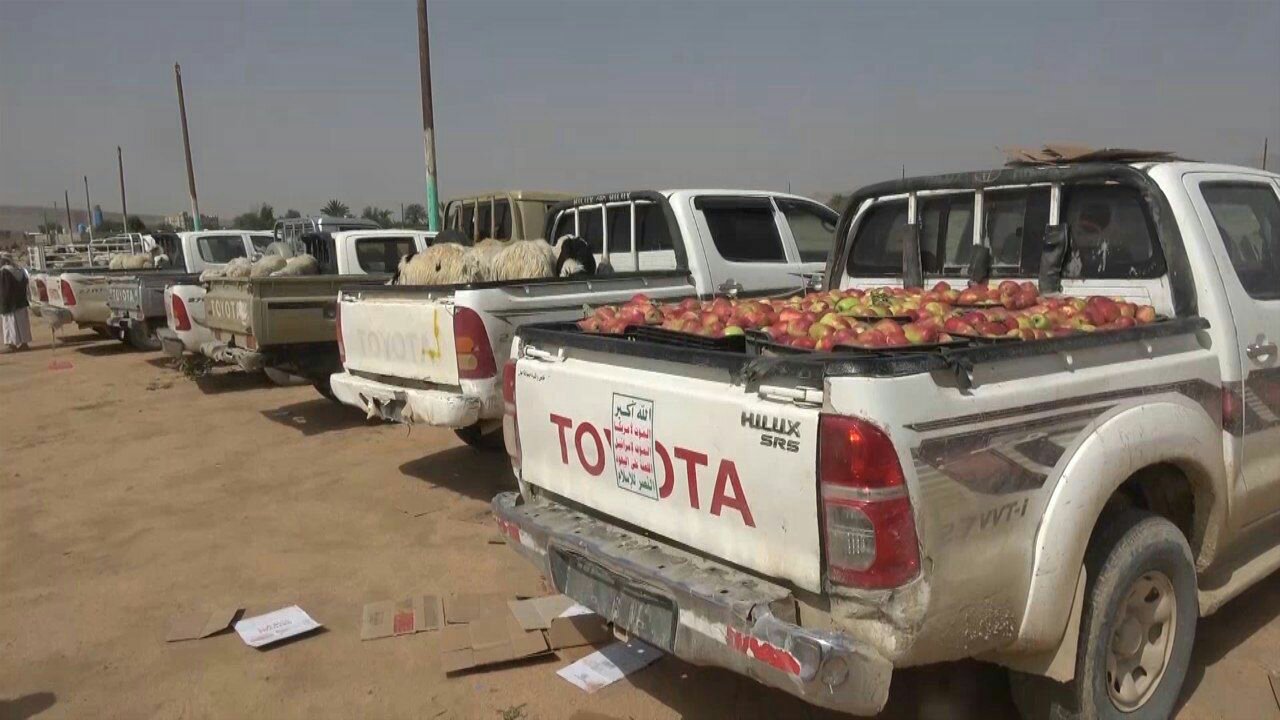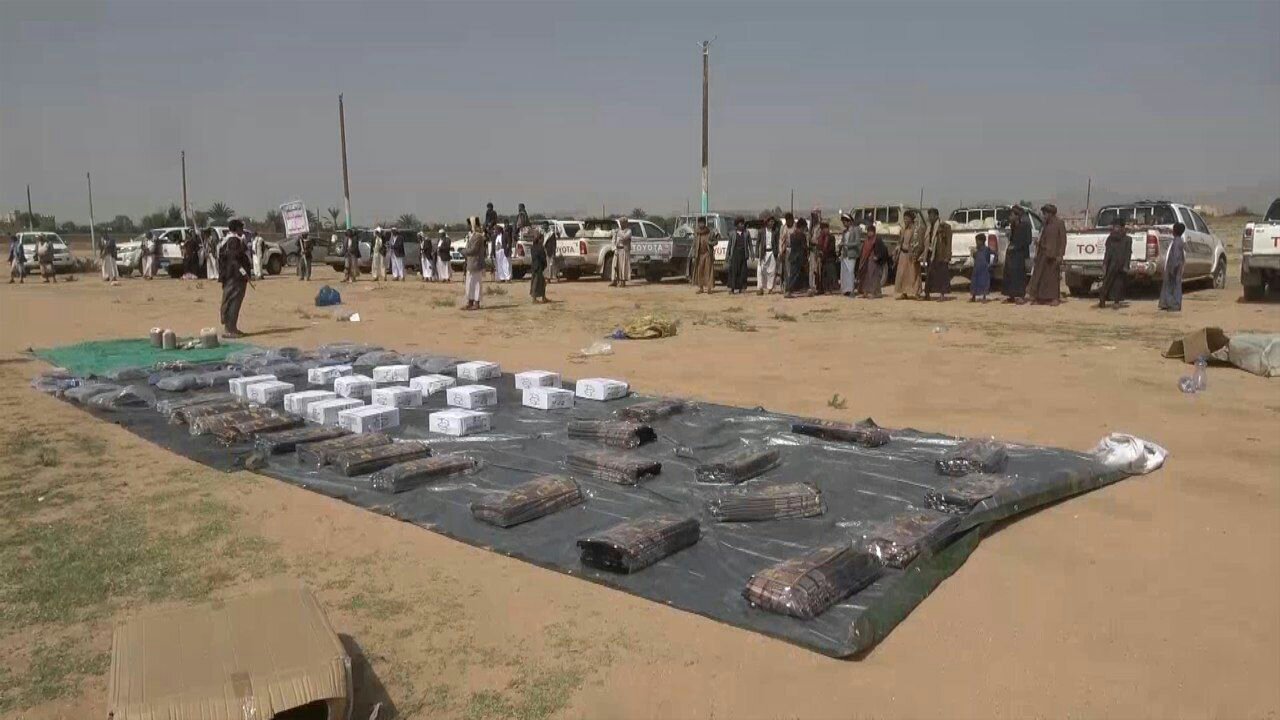 وتضمنت القافلة مواد غذائية متنوعة والمواشي والملابس والعسل الصعدي والمبالغ المالية.