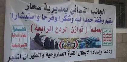 باركت الهيئة النسائية لأنصارالله بمديرية سحار محافظة صعدة عملية توازن الردع الرابعة التي نفذها سلاح الجو المسير والقوة الصاروخية في العمق السعودي.