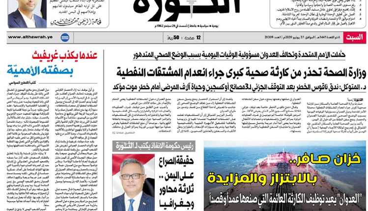 – “العدوان” يعيد توظيف الكارثة العائمة التر صنعها عمدا وقصدا .