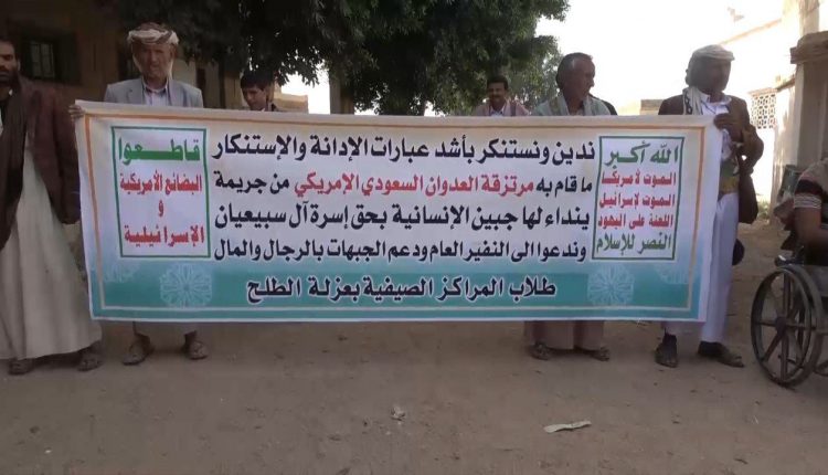صعدة : وقفة طلابية بعزلة الطلح بسحار استنكارا لجريمة العدوان بحق آل سبيعيان بمأرب