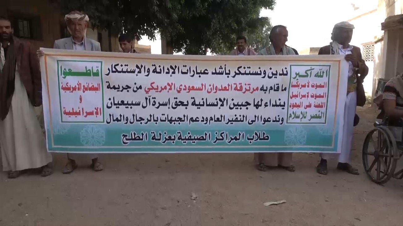 نظم طلاب ومعلمو المراكز الصيفية بعزلة الطلح بمديرية سحار بمحافظة #صعدة وقفة احتجاجية استنكارا للجريمة الوحشية بحق أسرة آل سبيعيان بمأرب.