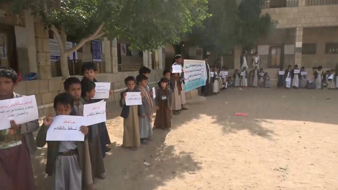 كما نددوا بالصمت الدولي إزا مايتعرض له أطفال اليمن من انتهاكات وقتل مستهجنين الموقف المخزي للمجتمع الدولي وتواطئه مع تحالف العدوان .. منددين باستمرار الحصار على الشعب اليمني.