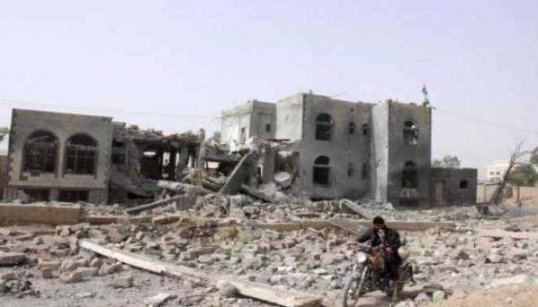 العدوان يدمر المجمع الحكومي بمديرية حوث بعمران