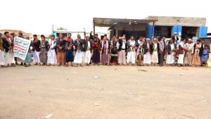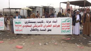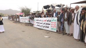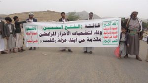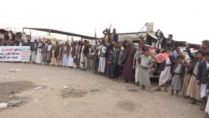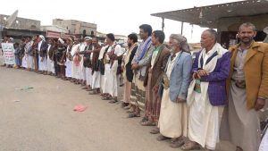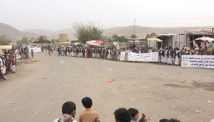 وأدان المشاركون في الوقفة جرائم العدوان في مأرب والجوف مؤكدين على ان هذه الجرائم ستدفع أحرار اليمن للجبهات للدفاع عن الأرض والعرض.