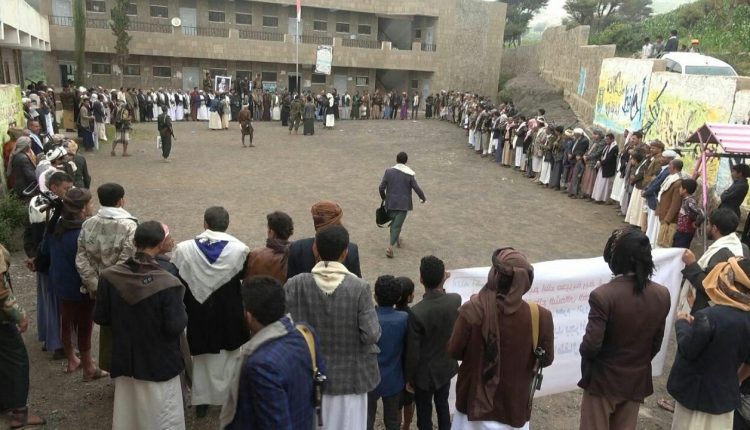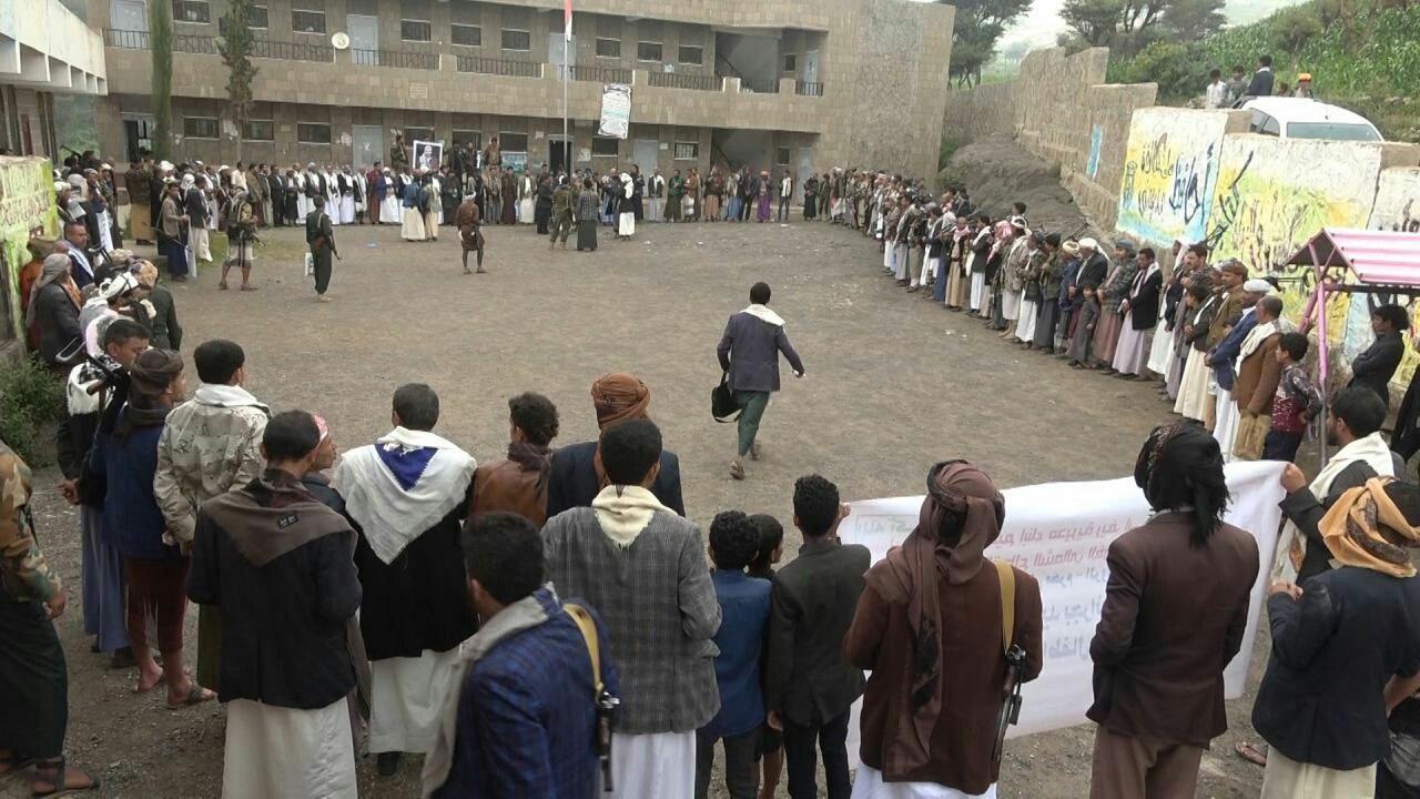 نفير عم في مذيخرة وريف إب ردا على جرائم العدوان واحتجاز المشتقات النفطية