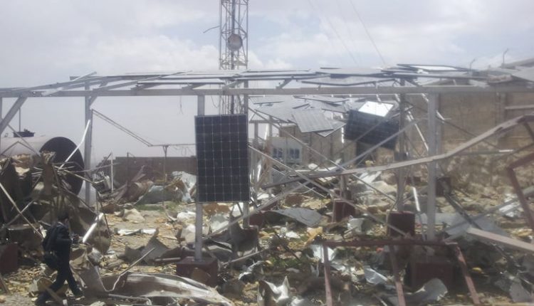 طيران العدوان يستهدف شبكة الاتصالات في عيال سريح بعمران