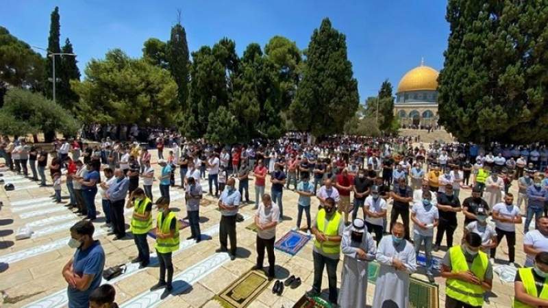 وأفادت مصادر محلية أن 10 آلاف مصلٍ أدوا الصلاة مع اتخاذ الاحتياطات اللازمة للوقاية من وباء كورونا.