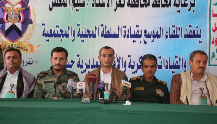 كما عبرا عن تقديرهم لجهود المحافظ واهتمامه بحيفان، مؤكدين وقوفهم الكامل الى جانبه في العمل على مشروع الرئيس الشهيد الصماد والمتمثل بشعار” يد تحمي ويد تبني”، وكذا مساهمة الشئون الإنسانية ورجال الخير في دعم عدد من المشاريع الخدمية بالمديرية.. معلنين استمرار أبناء مديرية حيفان بتقديم الواجب الوطني المقدس ورفد الجبهات بقوافل العطاء وكتائب الرجال الأشداء حتى تحقيق النصر.