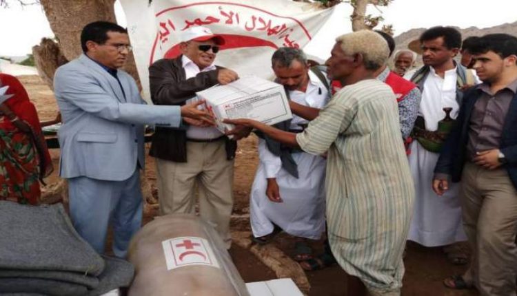 دشن مدير فرع المجلس الأعلى لإدارة وتنسيق الشؤون الإنسانية والتعاون الدولي بمحافظة حجة علان فضائل، اليوم الأحد، توزيع مواد إيوائية للنازحين المتضررين من السيول في مديرية بني قيس مقدمة من فرع جمعية الهلال الأحمر اليمني بالمحافظة.