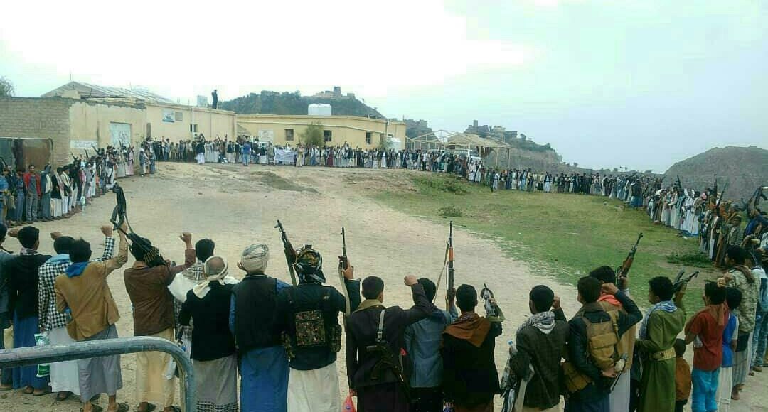 نفذ أبناء مديرية أفلح الشام بمحافظة حجة ، يوم امس الأحد، وقفة قبلية مسلحة حاشدة وغاضبة أعلنوا خلالها استمرار النفير العام ورفد الجبهات ردا على جرائم العدوان الأمريكي السعودي ومرتزقته .